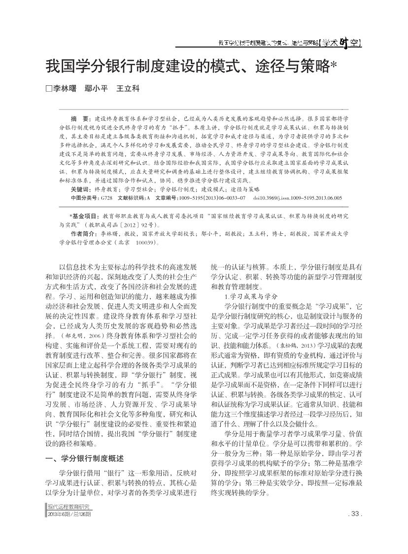 我国学分银行制度建设的模式、途径与策略