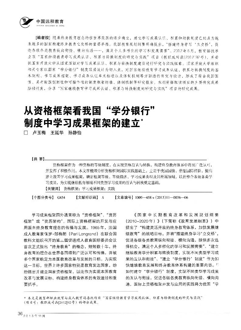 从资格框架看我国“学分银行”制度中学习成果框架的建立